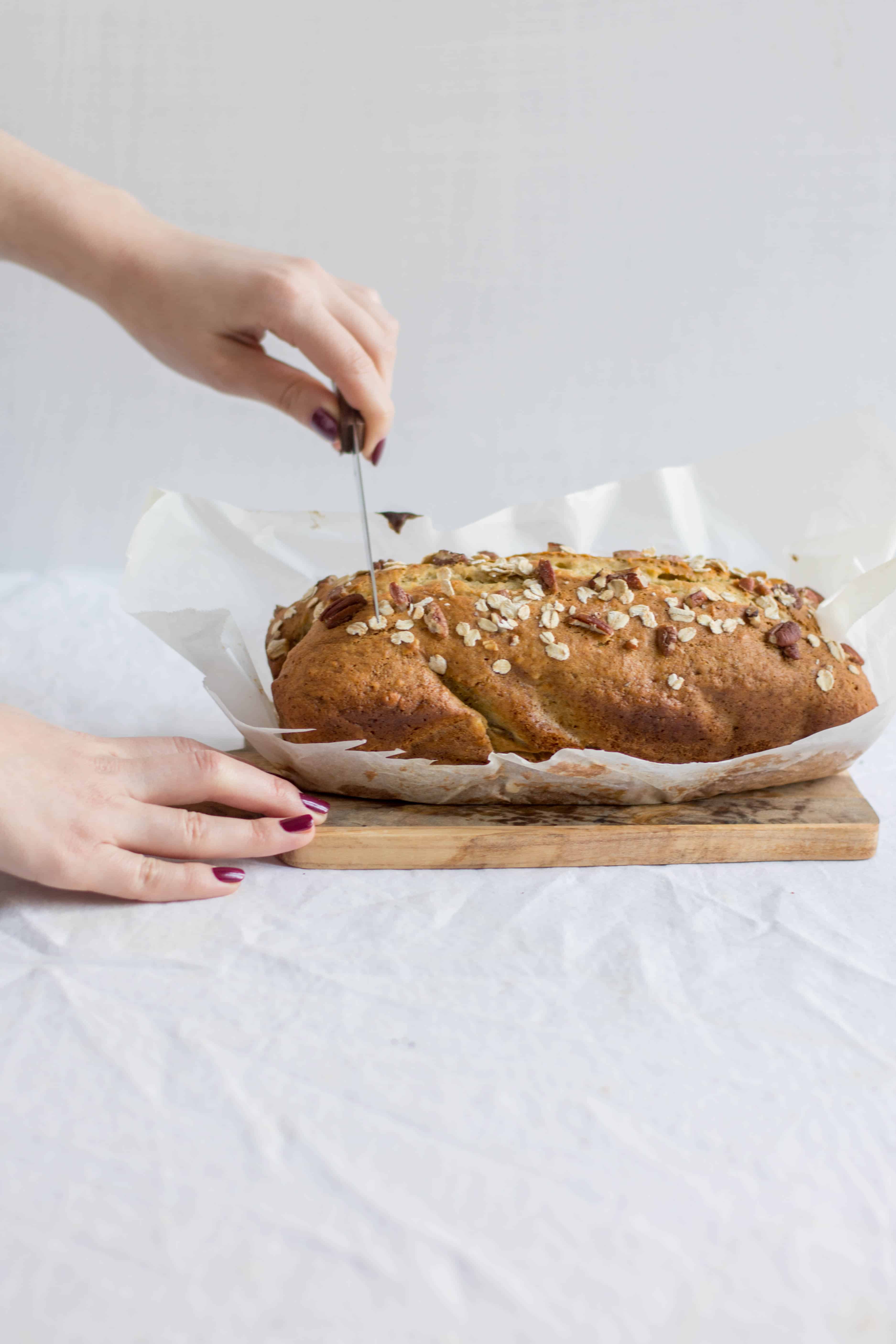 Banana bread aux flocons d’avoine et noix de pécan